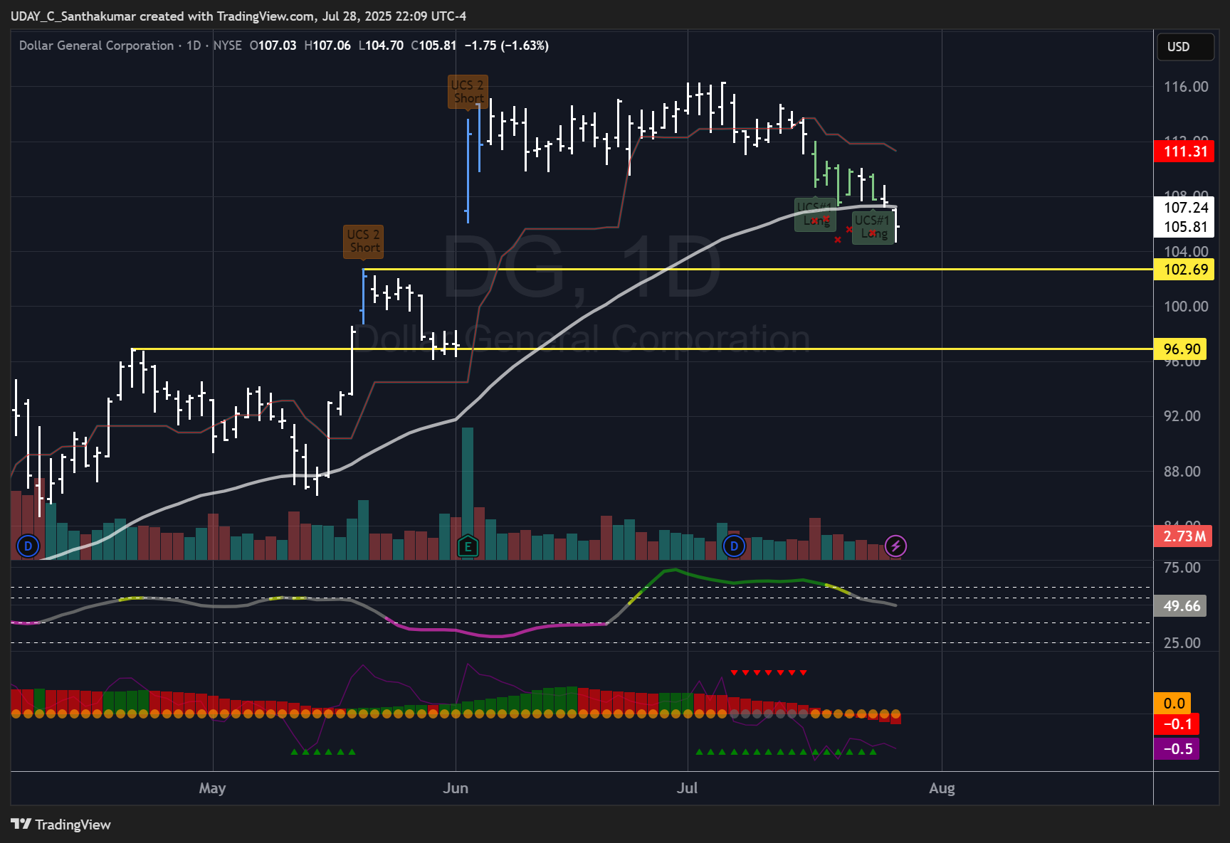 This is technical value land (not long term investing type value). $DG has been punished, but it’s now pressing into support around $102.50 and $97.00, and the stretch is clear. RSI, volume, and structure all say "short term oversold."