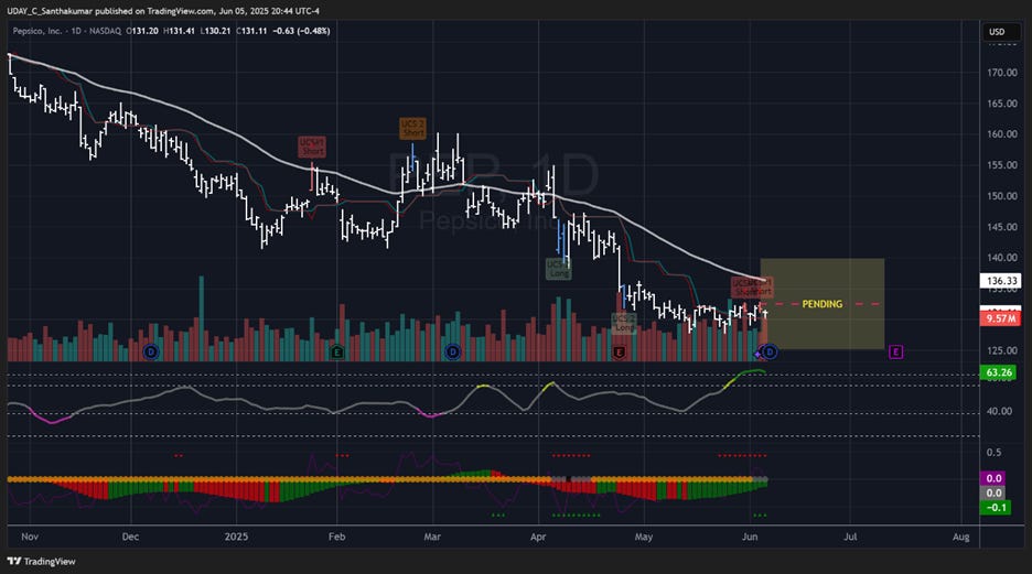 Note: PEP’s defensive nature means fake-outs are common — confirmation matters. To save my mental health, I prefer to setup bi-directional trades, and manage the outcome.